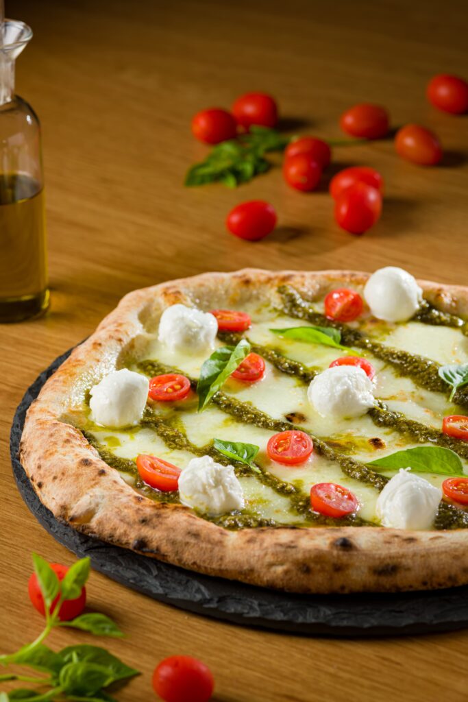 A Pizza “Napoletana”, também chamada de Napolitana, é um clássico da culinária italiana. Criada na cidade de Nápoles, a verdadeira pizza napolitana é preparada com uma massa fina especial, coberta tipicamente com molho de tomate fresco, fatias de mussarela e folhas de manjericão, além de possuir charmosas bordas altas e o centro mais fino.